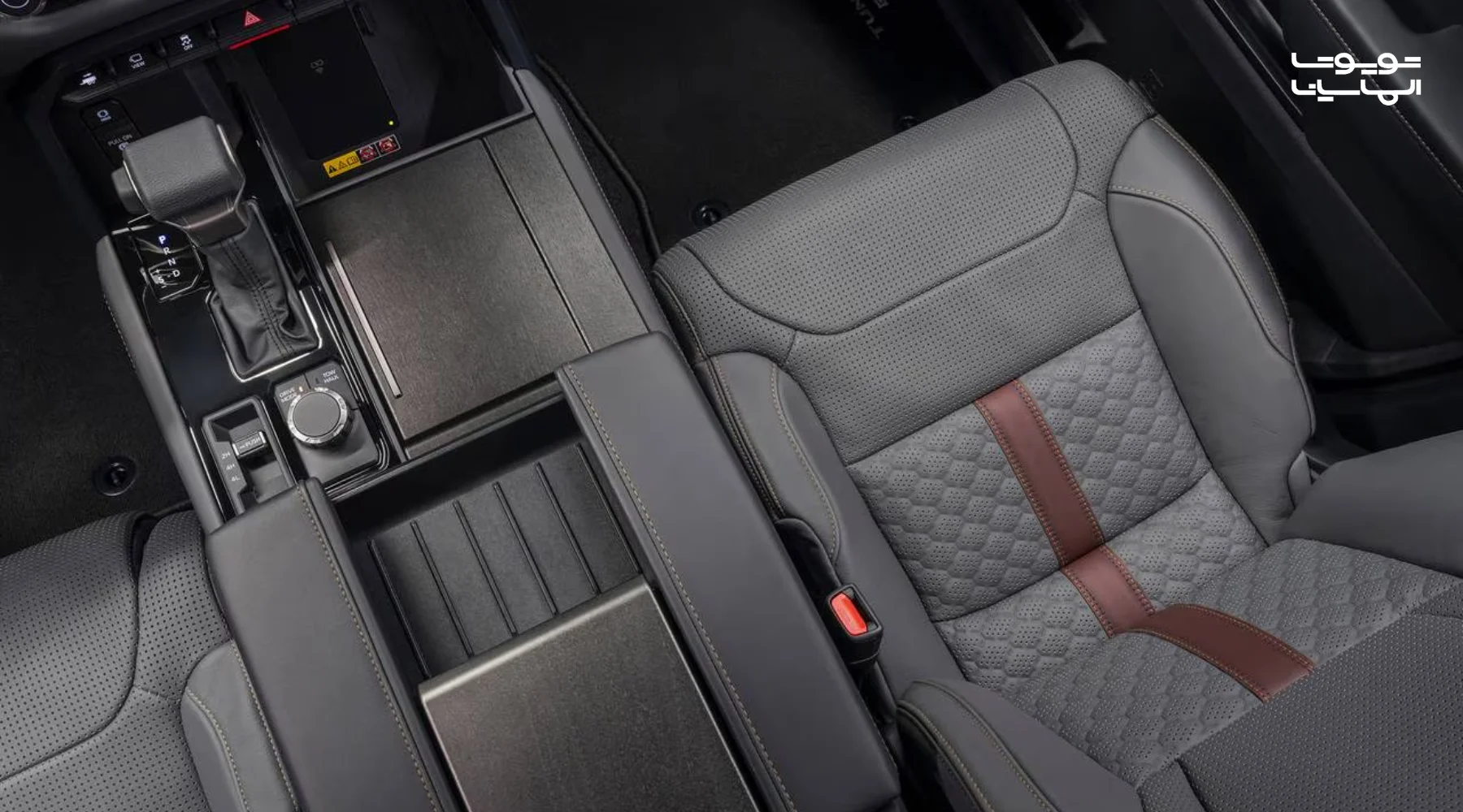 استفاده از چرم طبیعی درجه یک و تریمهای چوبی واقعی (نه پلاستیک طرح چوب!) در کنار سقف پانورامای بزرگی که آسمان را به داخل کابین میآورد، حسی از وقار و لوکس بودن را به شما منتقل میکند که پیش از این فقط در تویوتا لندکروز دیده بودیم.