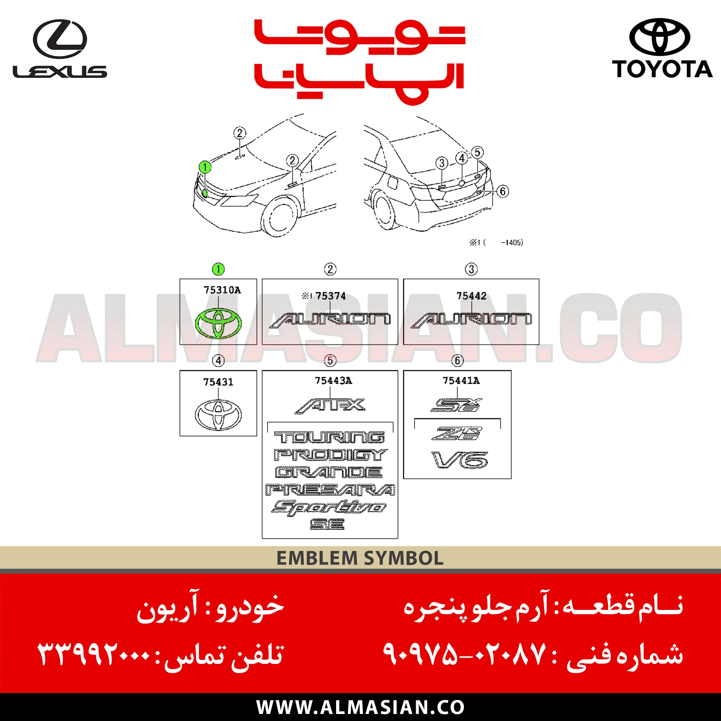 نام قطعه آرم جلو پنجره آریون