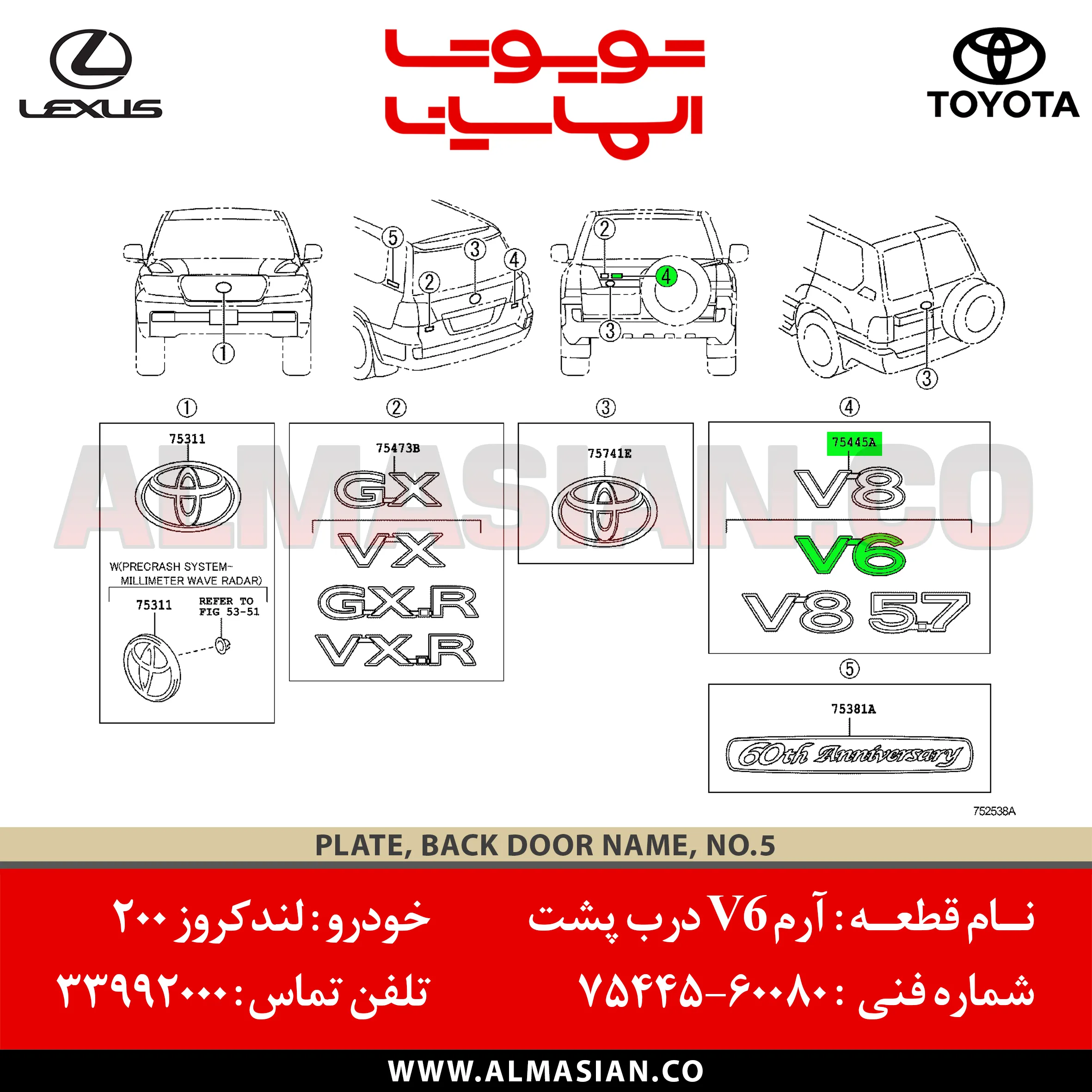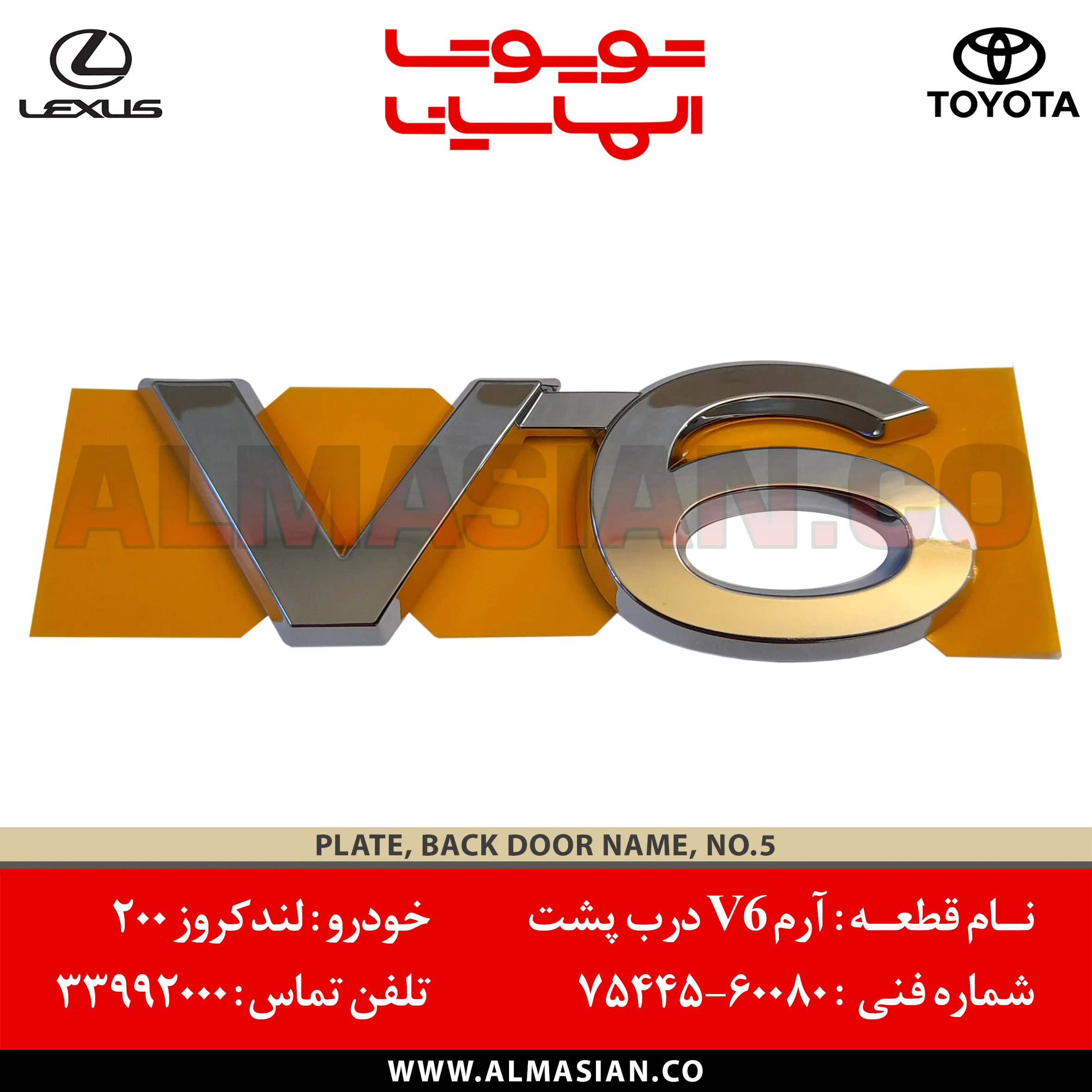 نام قطعه آرم V6 درب پشت لندکروز 200