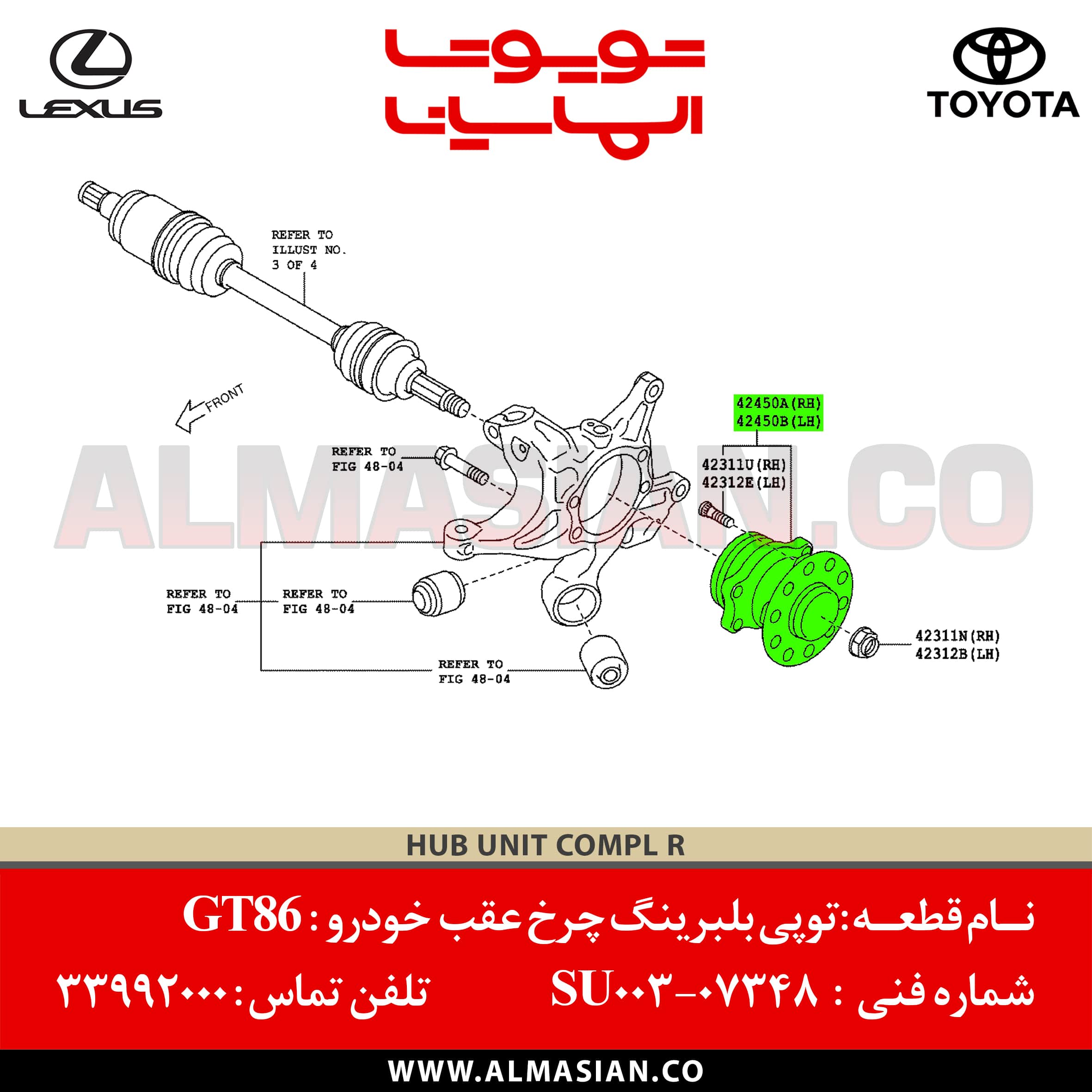 نام قطعه توپی بلبرینگ چرخ عقب GT86