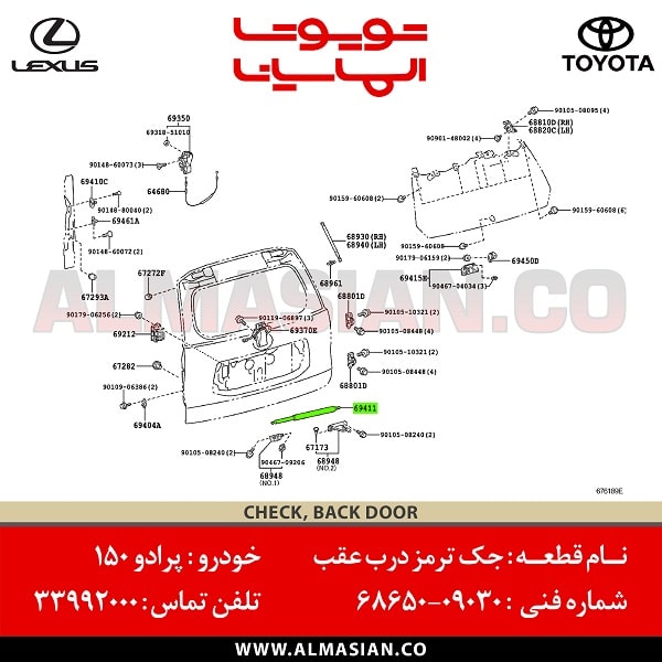 نام قطعه جک ترمز درب عقب پرادو ۱۵۰