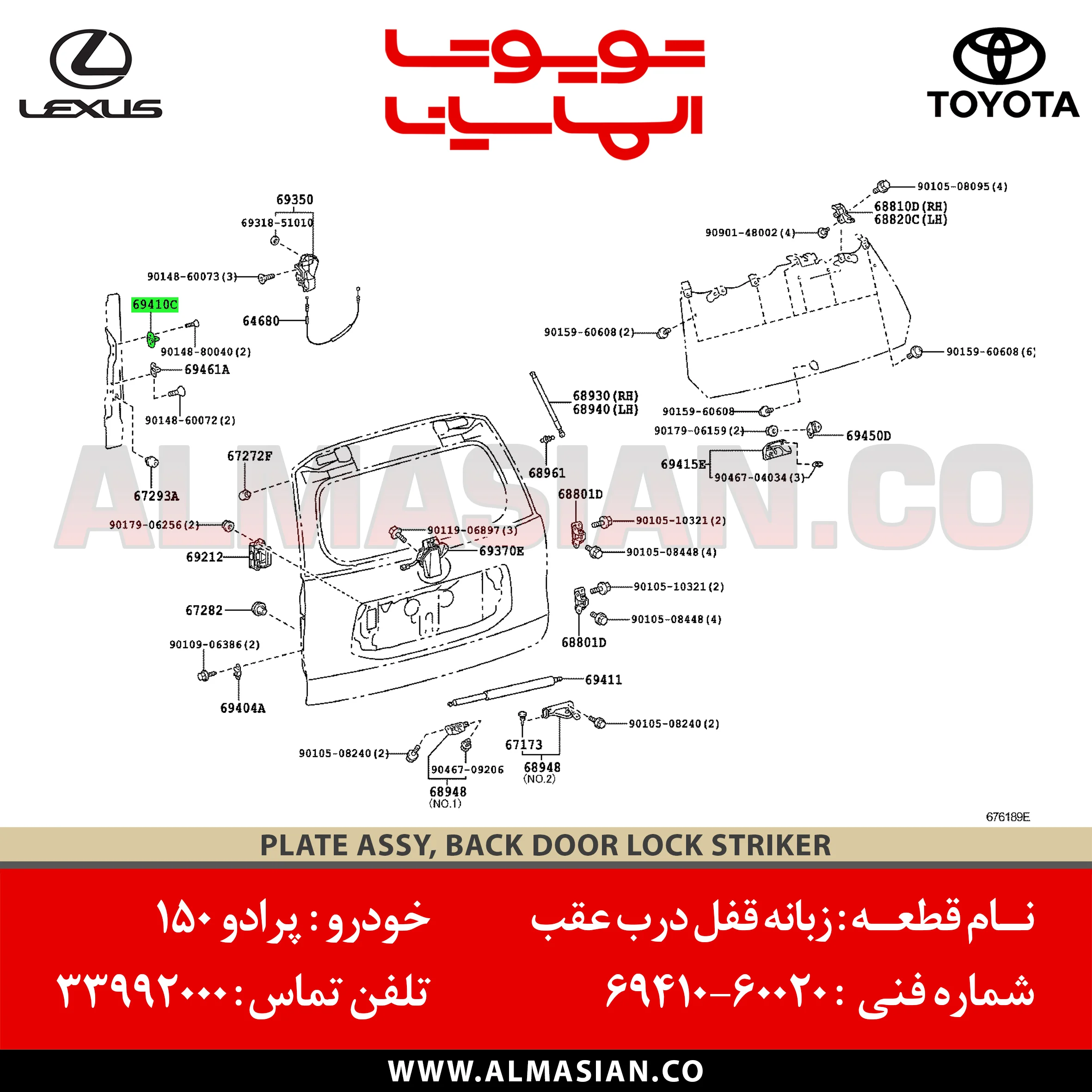 دسته: خودروهای شاسی بلند تویوتا, قطعات بدنه پرادو, لوازم یدکی پرادو, لوازم یدکی تویوتا, لولا و قفل در عقب پرادو