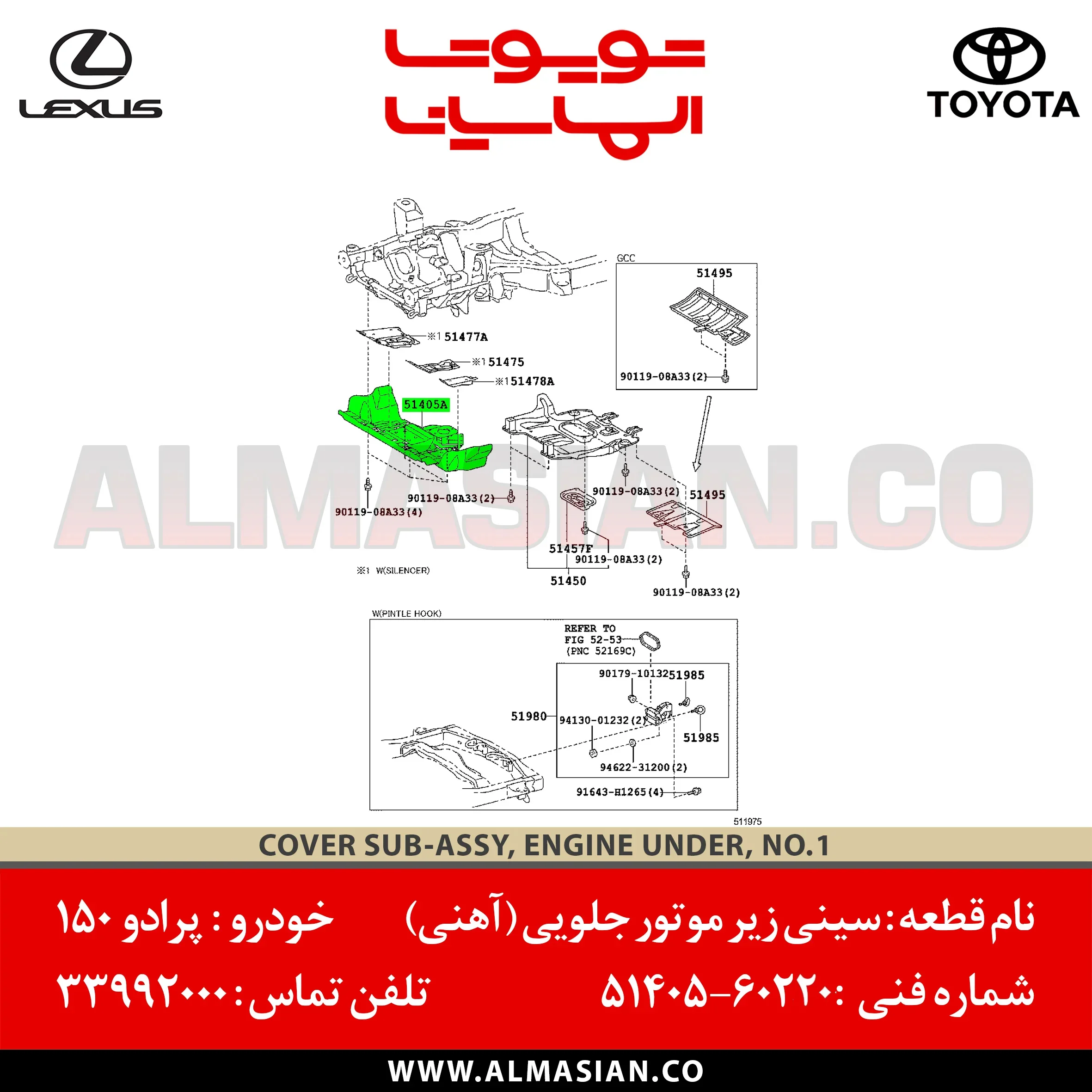 نام قطعه سینی زیر موتور جلو اهنی پرادو 150