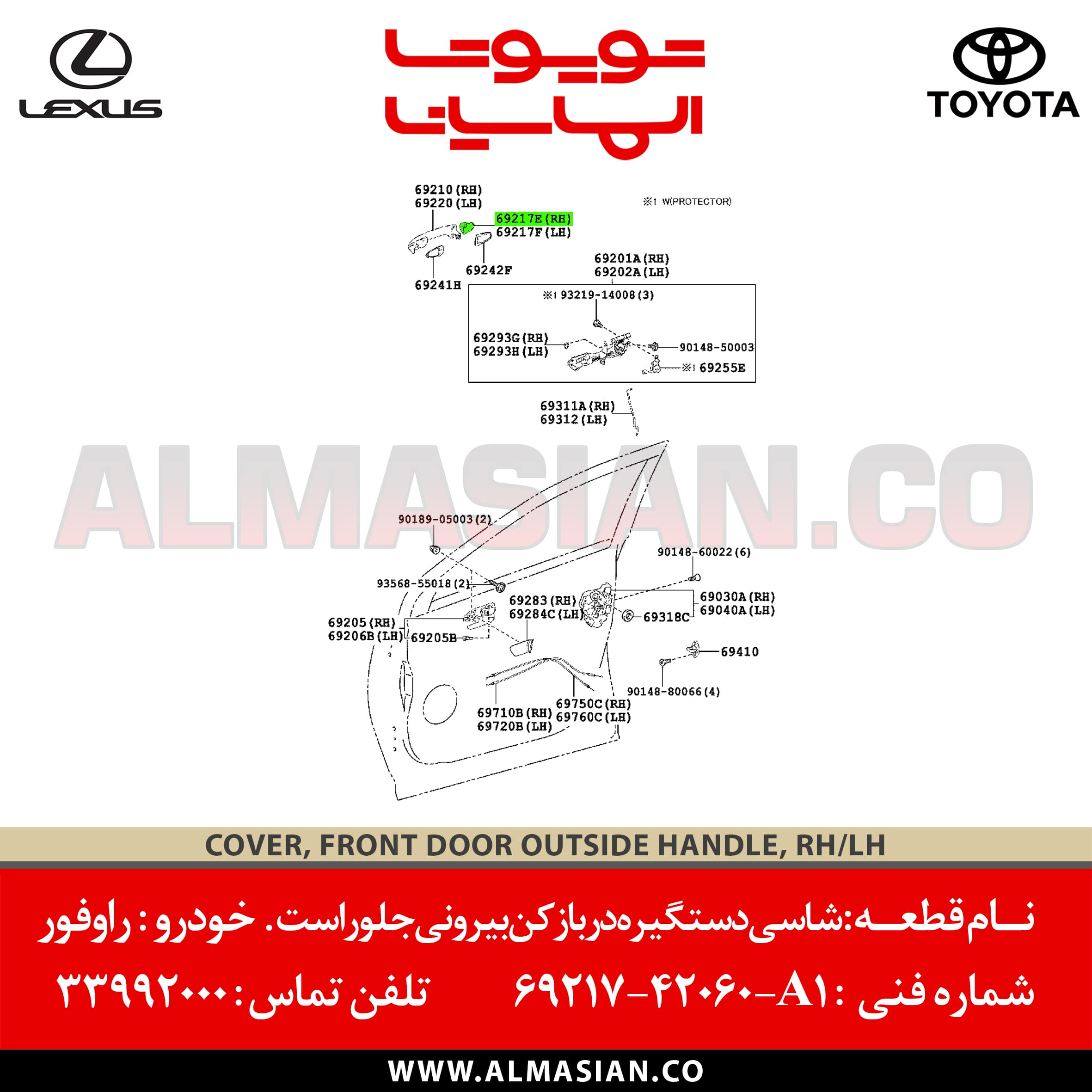 دسته: خودروهای شاسی بلند تویوتا, دستگیره و قفل در جلو, راوفور, قطعات بدنه راوفور, لوازم یدکی تویوتا