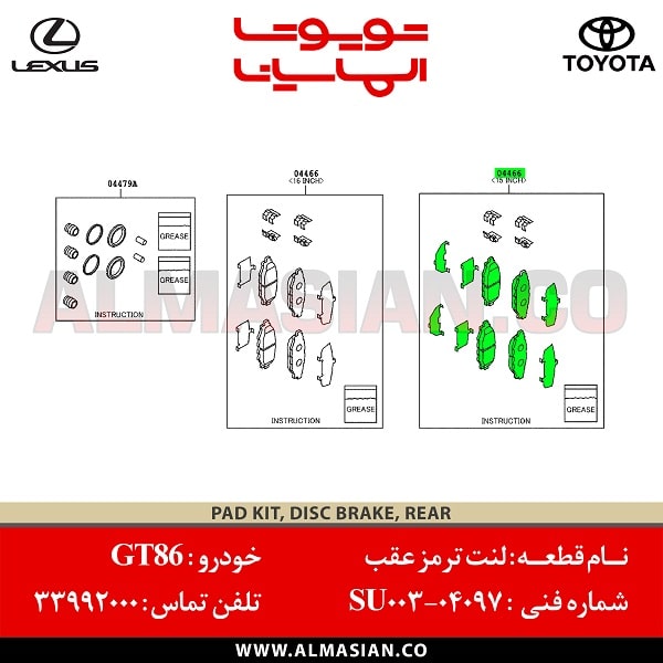| نام قطعه | لنت ترمز عقب GT86 مدل ۲۰۱۵ |