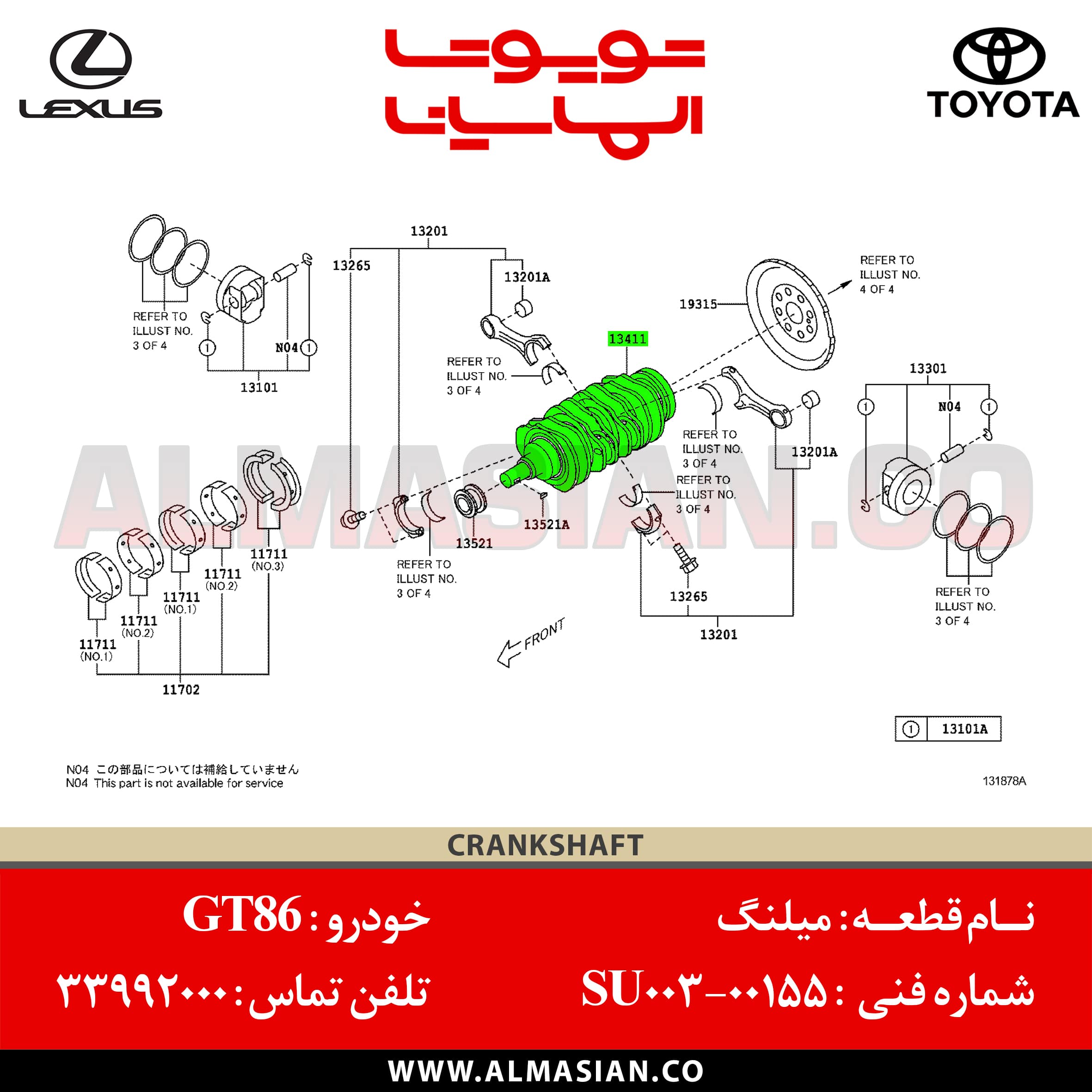 دسته: GT86, خودروهای سواری تویوتا, لوازم یدکی تویوتا, موتوری و قطعات GT86, میل لنگ و رینگ پیستون