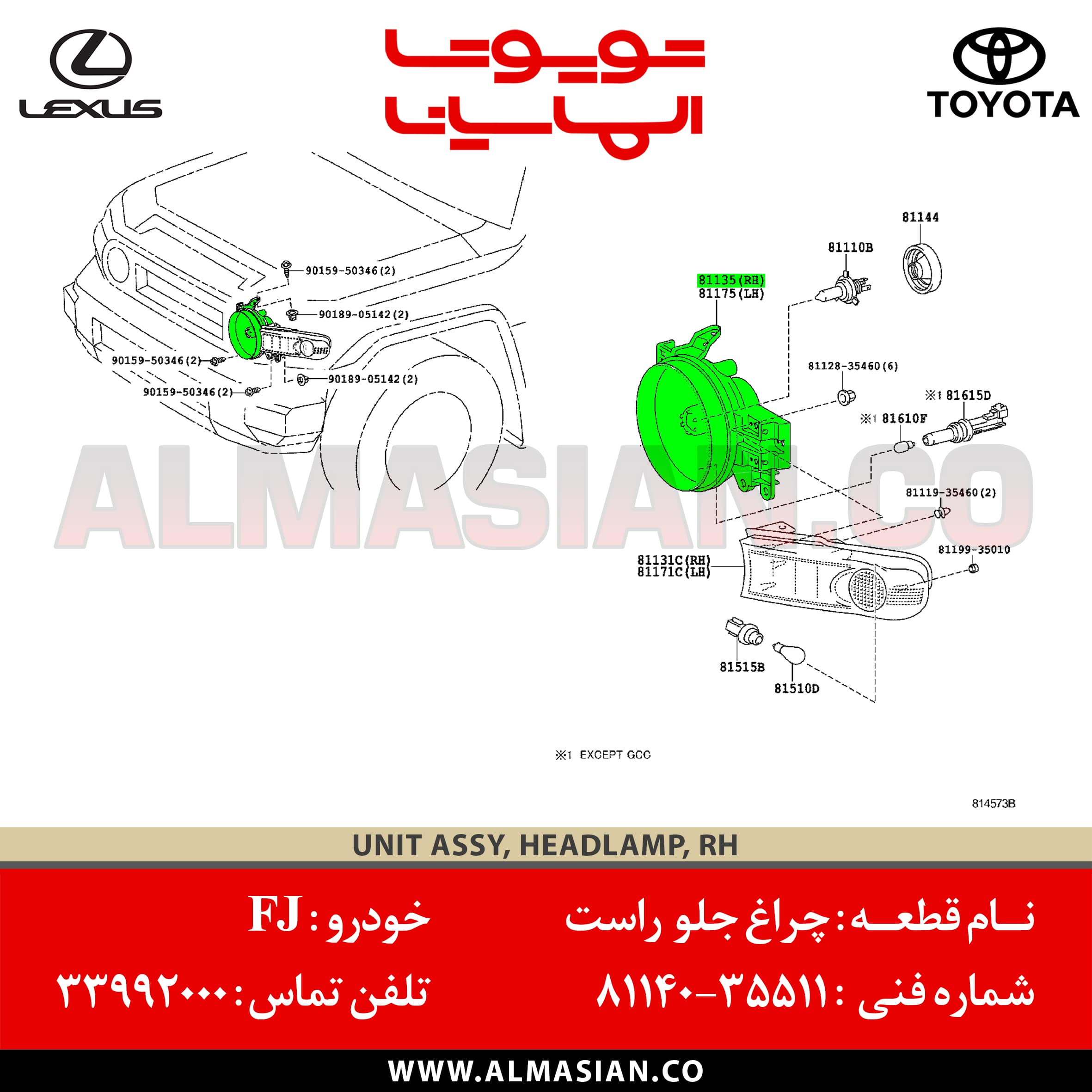 دسته: FJ Cruiser, چراغ های جلو FJ Cruiser, خودروهای شاسی بلند تویوتا, سیستم برقی FJ Cruiser, لوازم یدکی تویوتا
