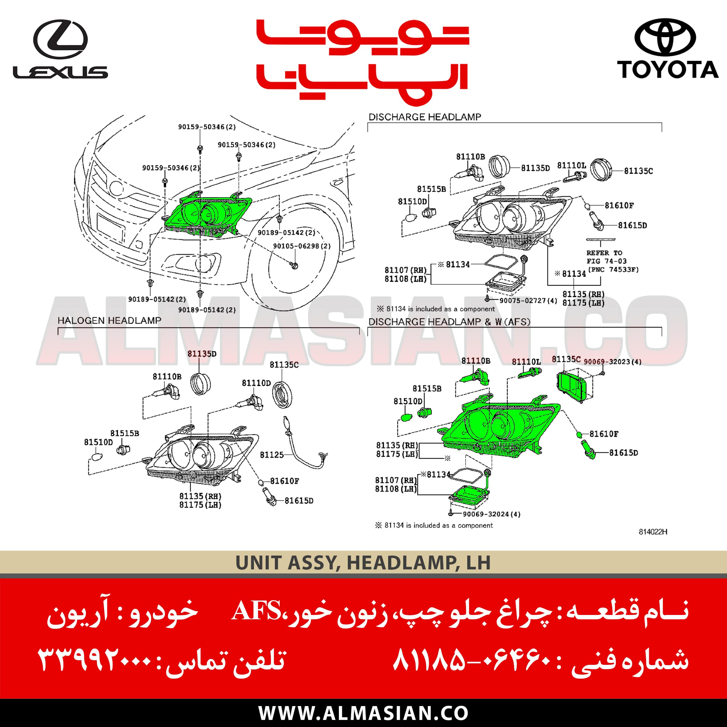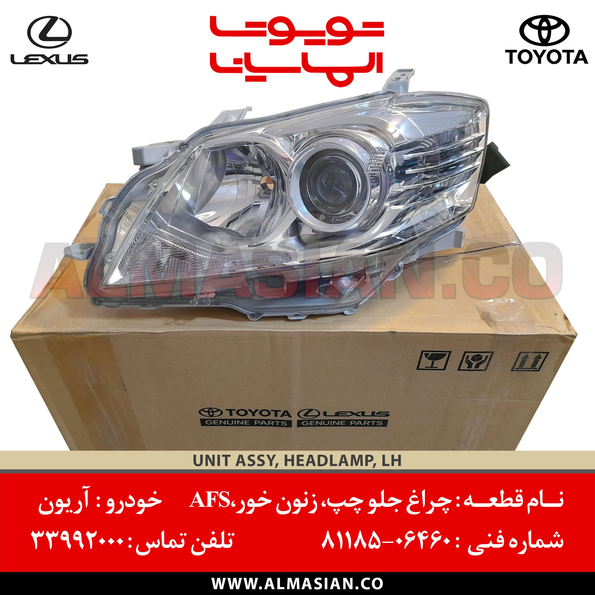 نام قطعه چراغ جلو چپ موتور دار زنون خور آریون