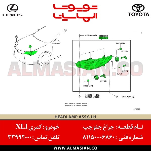 | نام قطعه | چراغ جلو چپ کمری XLI |