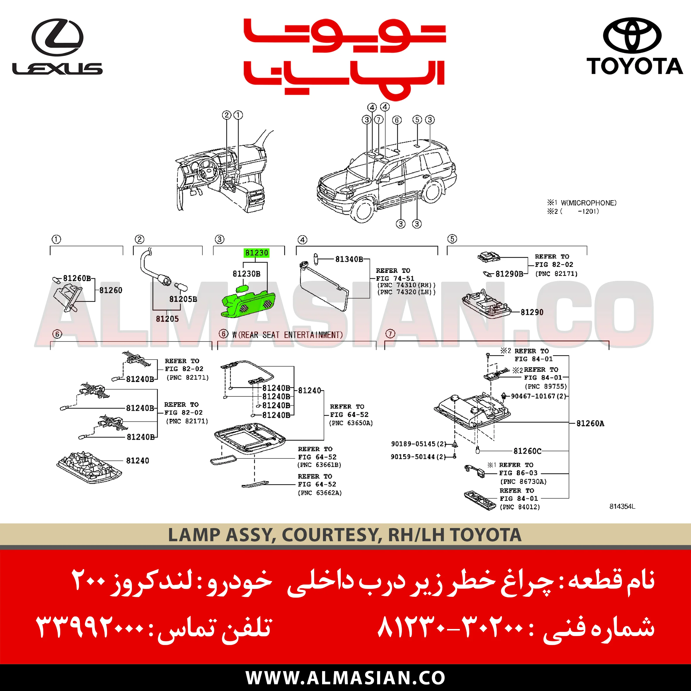 نام قطعه چراغ خطر درب داخلی لندکروز 200